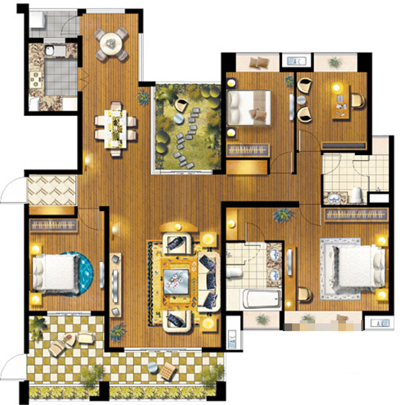 中海胥江府2号楼190平米户型4室2厅2卫1厨 1